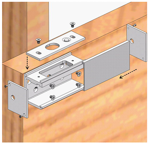 - สามารถติดตั้งบนส่วนหัวกรอบ ข้างขอบหรือขอบประตูด้วยการปิดกุญแจทั้งหมด